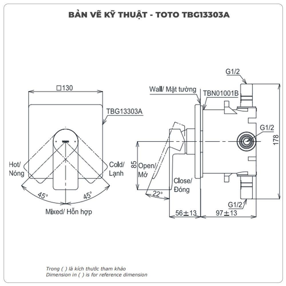 | Kết cấu | TBG03303B: Van điều chỉnh nóng lạnh TBN01001B: Phụ kiện âm tường |