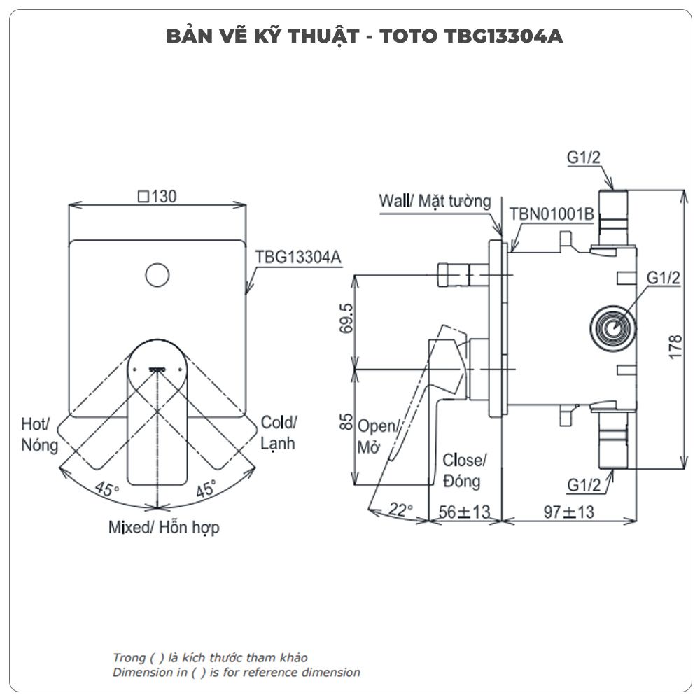 | Kết cấu | TBG13304A: Van điều chỉnh nóng lạnh TBN01001B: Phụ kiện âm tường |