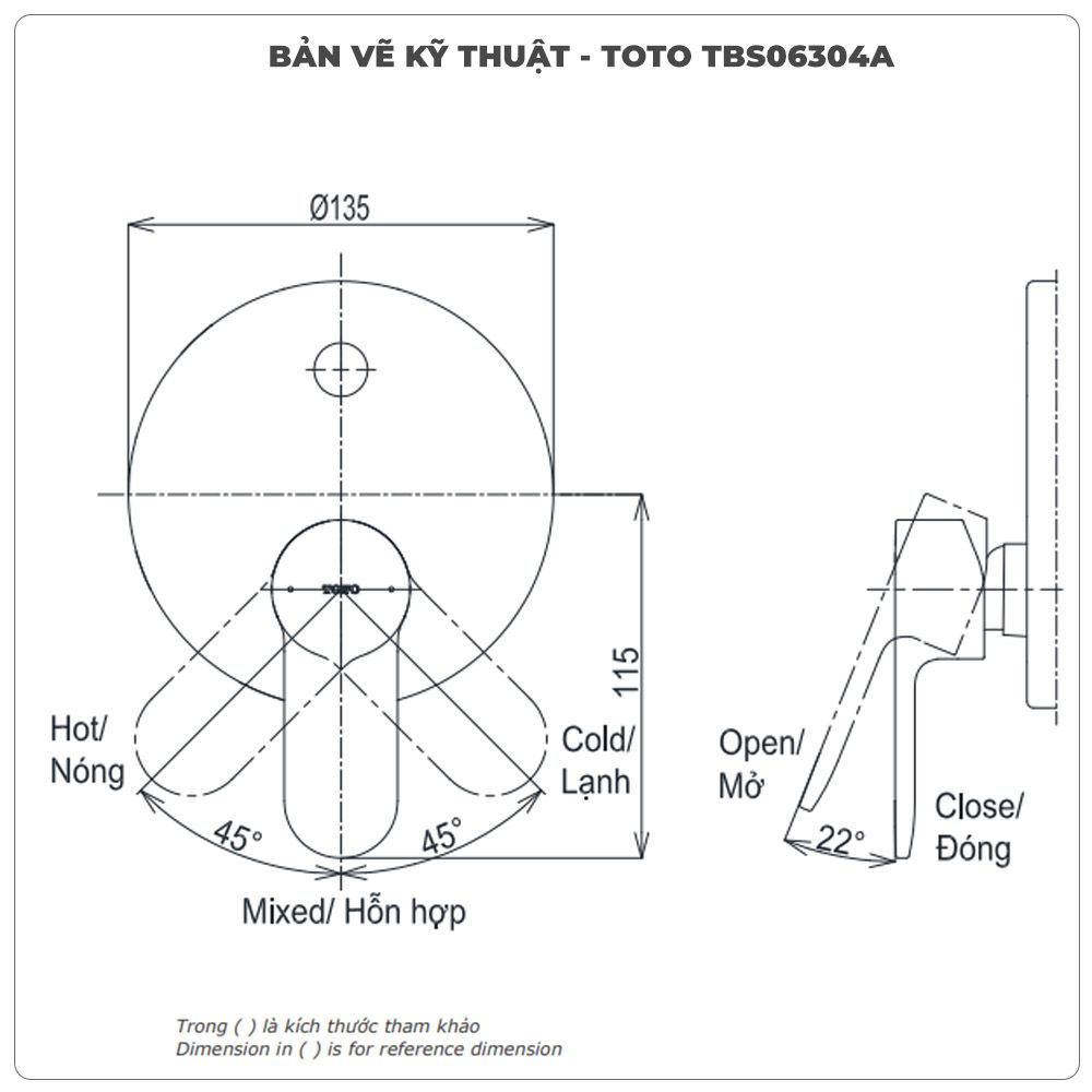 | Kết cấu | TBS06304A: Van điều chỉnh nóng lạnh TBS01304B1: Phụ kiện âm tường |