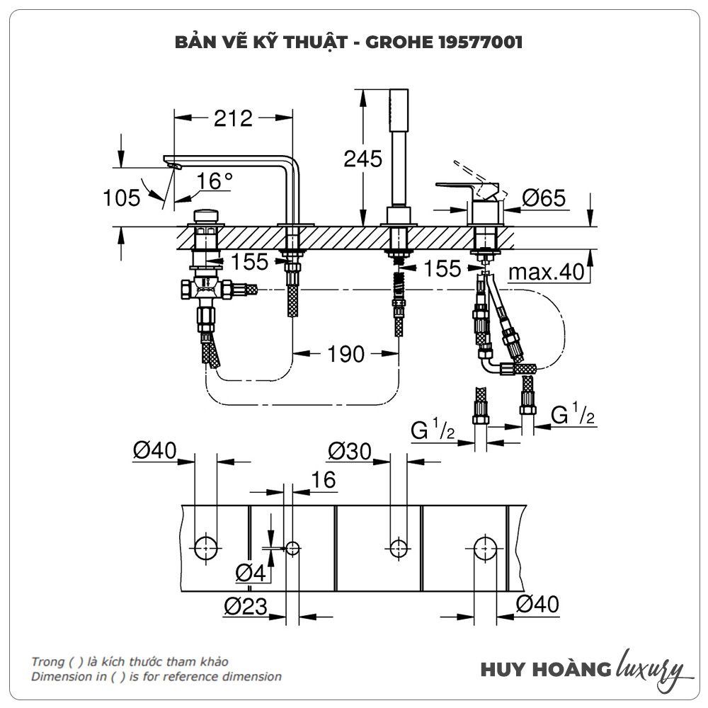 Thông tin sản phẩm: Vòi xả bồn GROHE 19577001 4 Lỗ