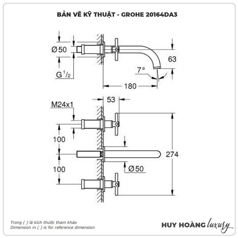 Thông tin sản phẩm: Vòi chậu gắn tường GROHE 20164DA3
