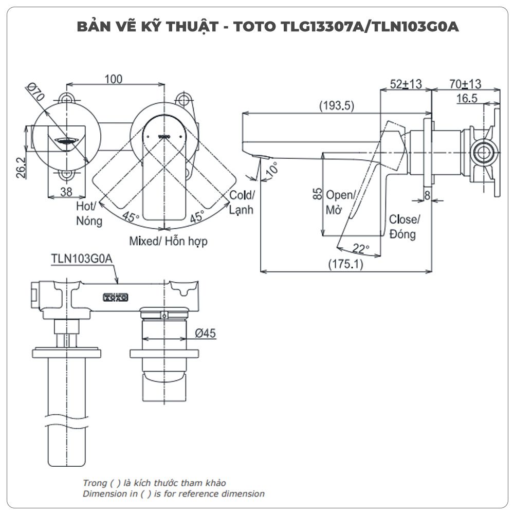 Thông tin sản phẩm: Vòi chậu gắn tường TOTO TLG13307A/TLN103G0A
