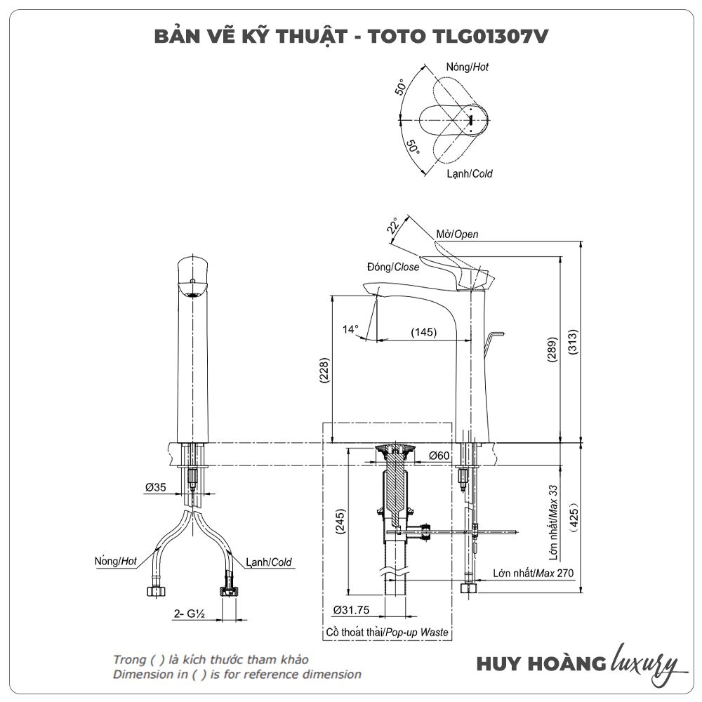 Thông số kỹ thuật: Vòi lavabo nóng lạnh TOTO TLG01307V