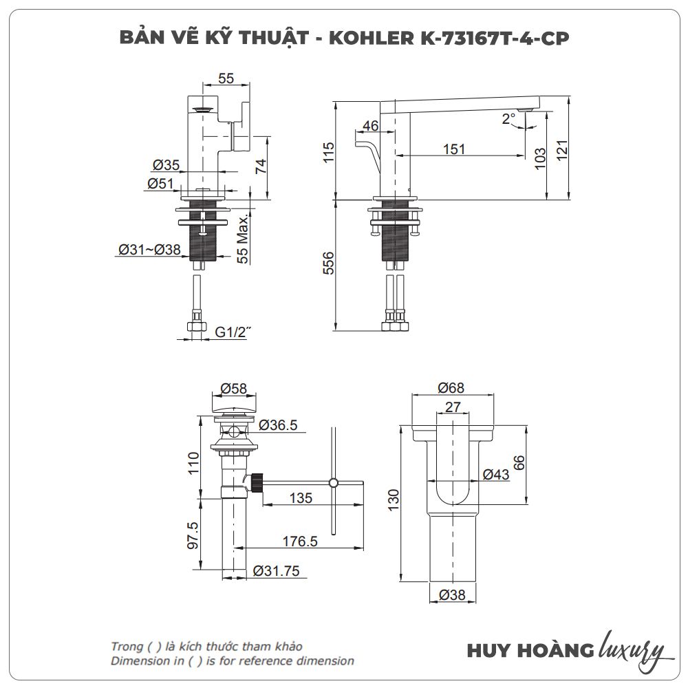 - Vòi lavabo nóng lạnh KOHLER K-73167T-4-CP được đóng gói hoàn thiện với tem dán chính hãng từ thương hiệu, phiếu bảo hành và phiếu thông tin;