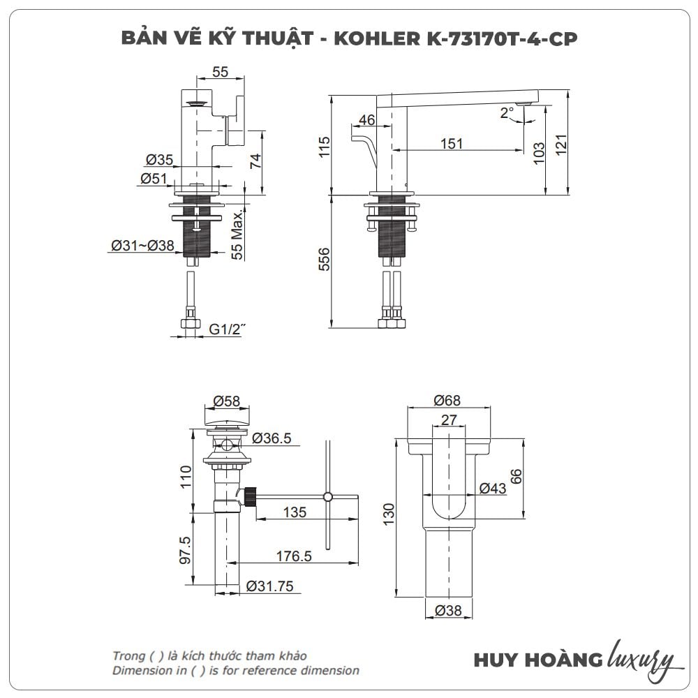 - Vòi lavabo nóng lạnh KOHLER K-73170T-4 được đóng gói hoàn thiện với tem dán chính hãng từ thương hiệu, phiếu bảo hành và phiếu thông tin;