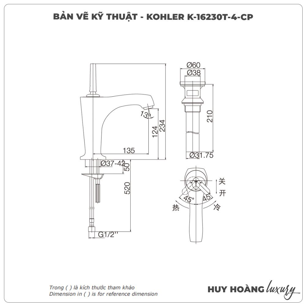 - Vòi lavabo nóng lạnh KOHLER K-16230T-4-CP được đóng gói hoàn thiện với tem dán chính hãng từ thương hiệu, phiếu bảo hành và phiếu thông tin;