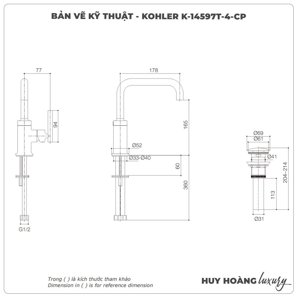 - Vòi lavabo nóng lạnh KOHLER K-14597T-4-CP được đóng gói hoàn thiện với tem dán chính hãng từ thương hiệu, phiếu bảo hành và phiếu thông tin;