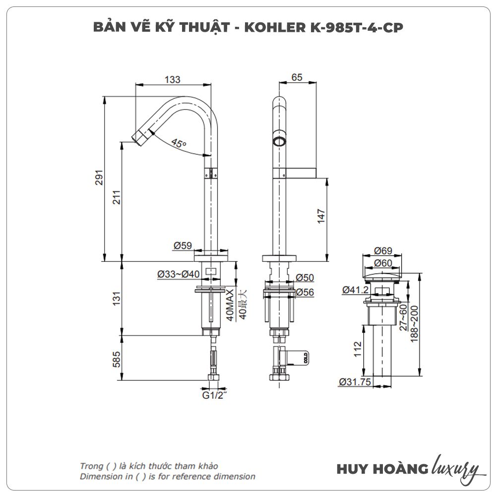 - Vòi lavabo nóng lạnh KOHLER K-985T-4-CP được đóng gói hoàn thiện với tem dán chính hãng từ thương hiệu, phiếu bảo hành và phiếu thông tin;