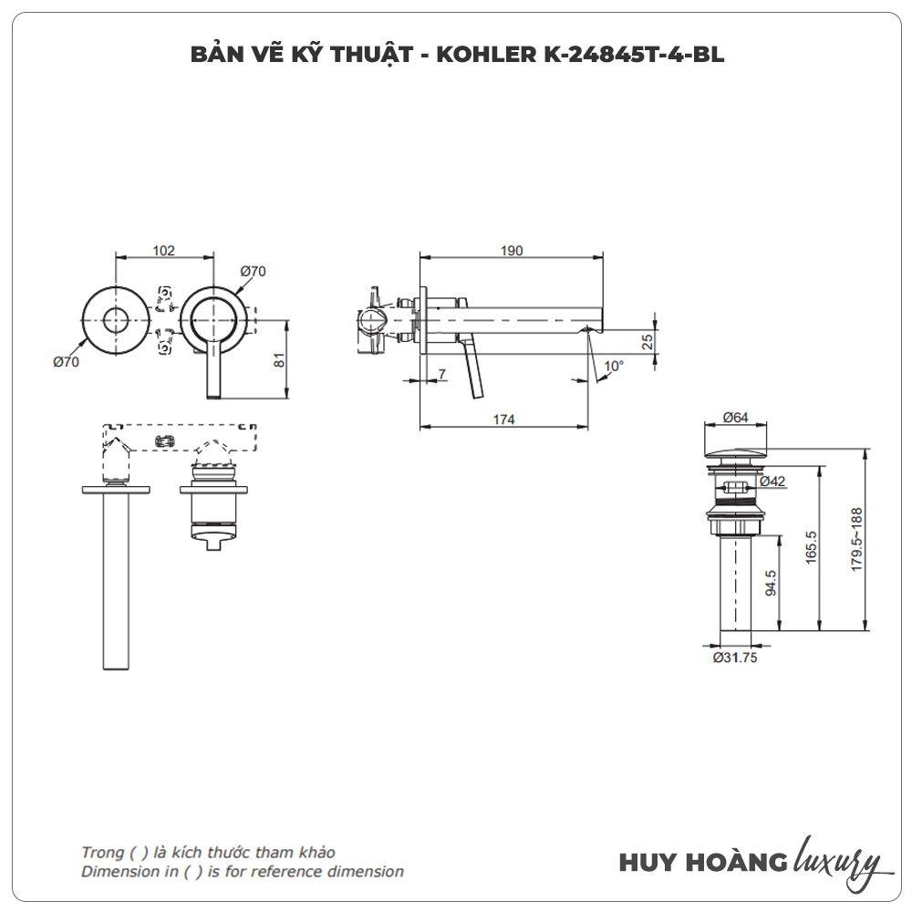 - Vòi gắn tường KOHLER K-24845T-4-BL được đóng gói hoàn thiện với tem dán chính hãng từ thương hiệu, phiếu bảo hành và phiếu thông tin;