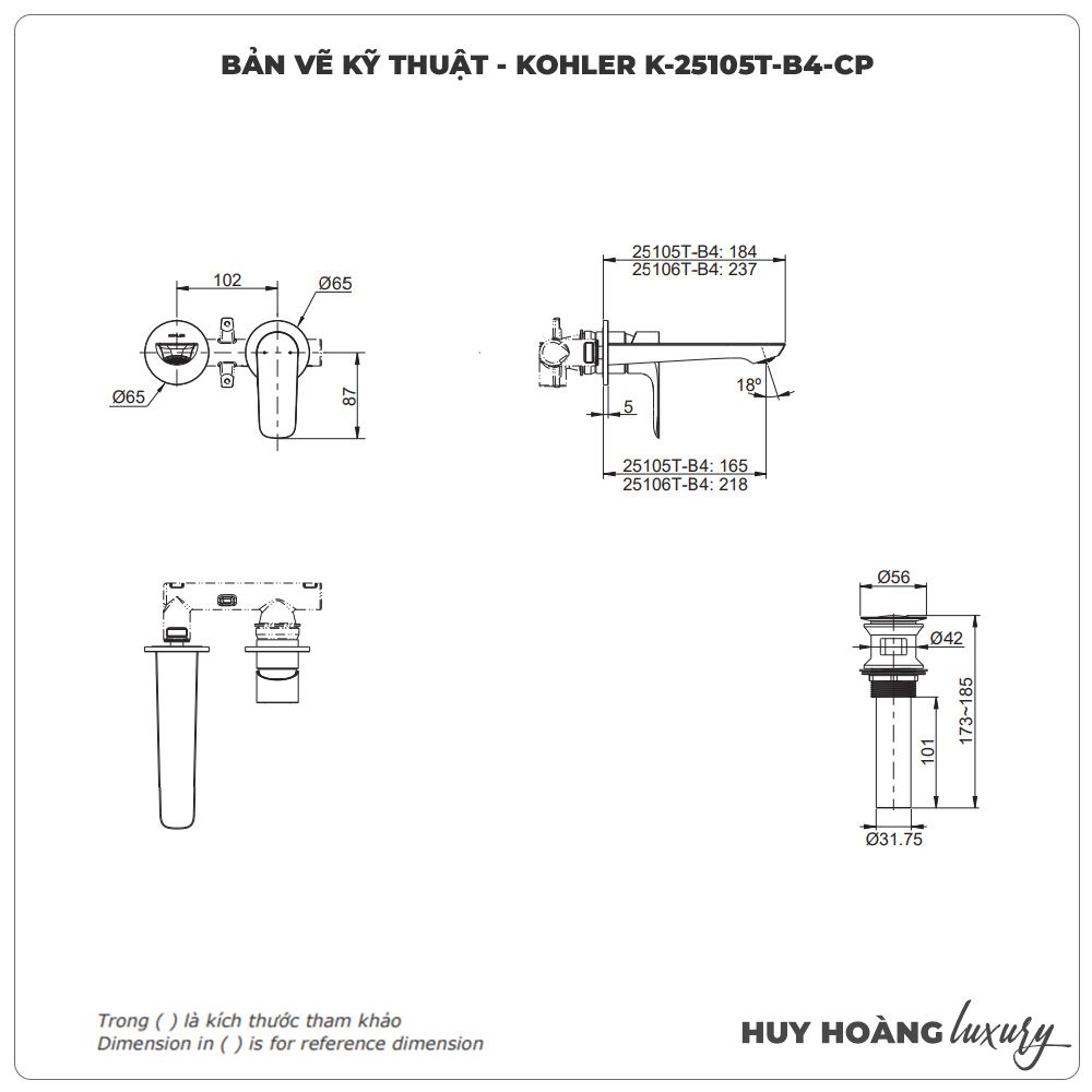 - Vòi gắn tường KOHLER K-25105T-B4-CP được đóng gói hoàn thiện với tem dán chính hãng từ thương hiệu, phiếu bảo hành và phiếu thông tin;