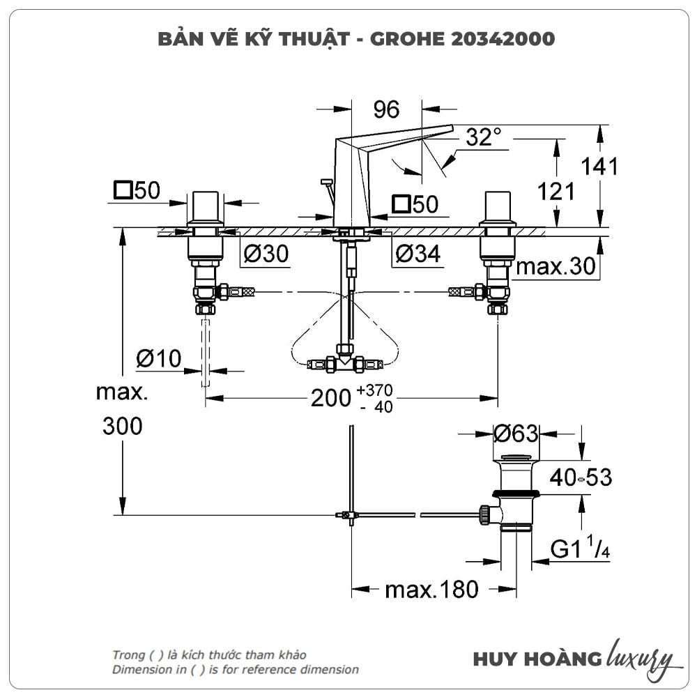 Thông tin sản phẩm: Vòi lavabo nóng lạnh 3 lỗ GROHE 20342000
