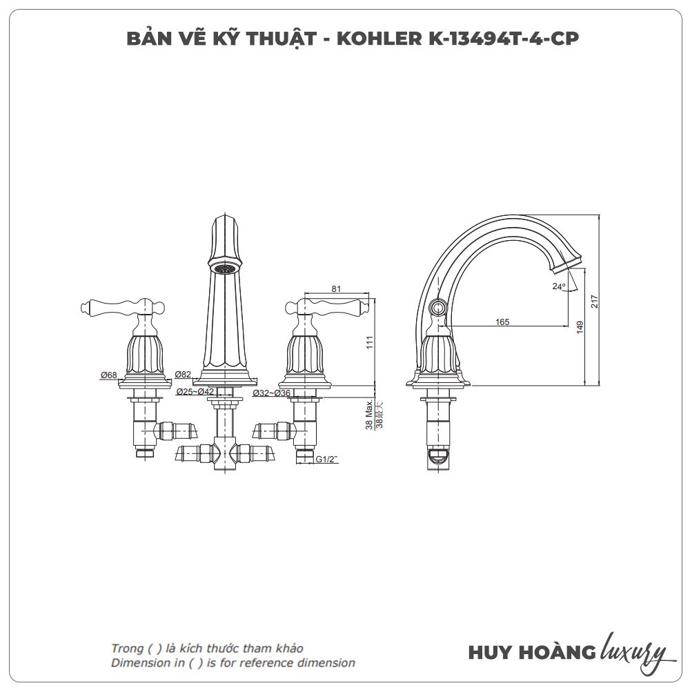 Thông tin sản phẩm: Vòi lavabo nóng lạnh 3 lỗ KOHLER K-13494T-4-CP