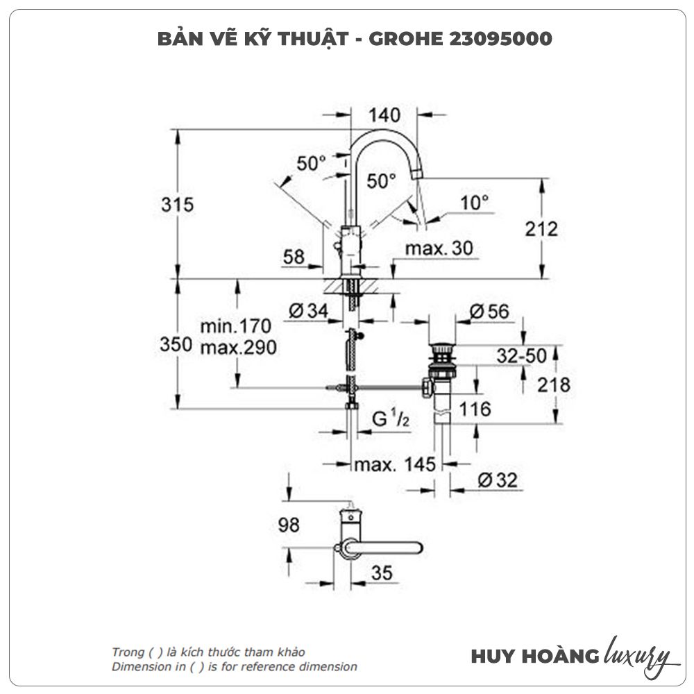 Thông tin sản phẩm: Vòi lavabo nóng lạnh GROHE 23090000 size L