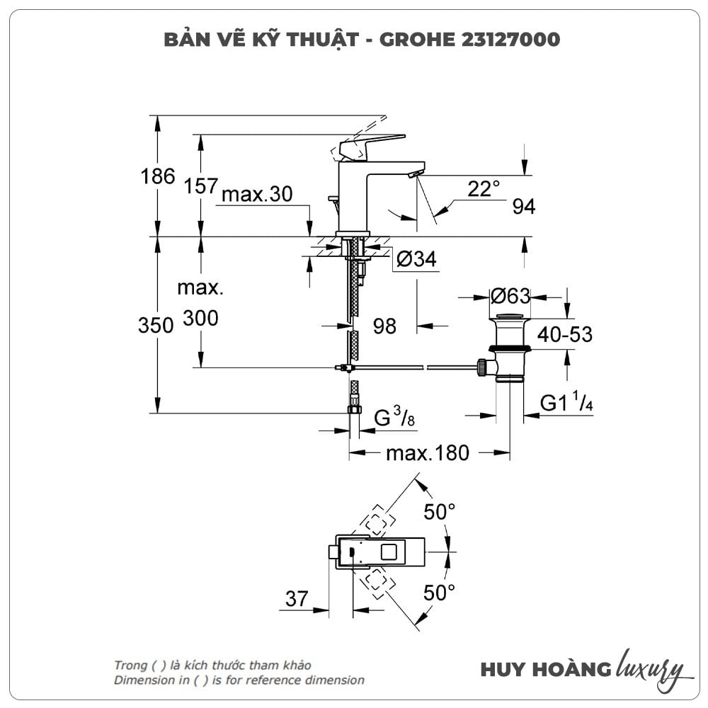 Thông tin sản phẩm: Vòi lavabo nóng lạnh GROHE 23127000 size S