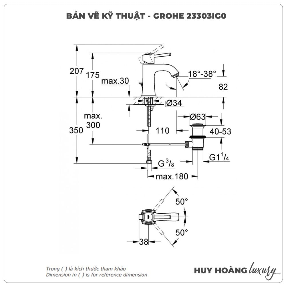 Thông tin sản phẩm: Vòi lavabo nóng lạnh GROHE 23303IG0 size S