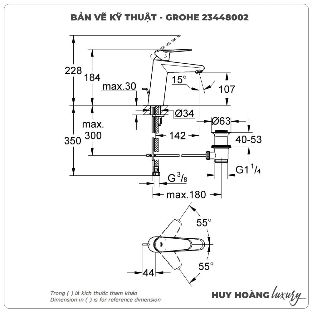 Thông tin sản phẩm: Vòi lavabo nóng lạnh GROHE 23448002 size M