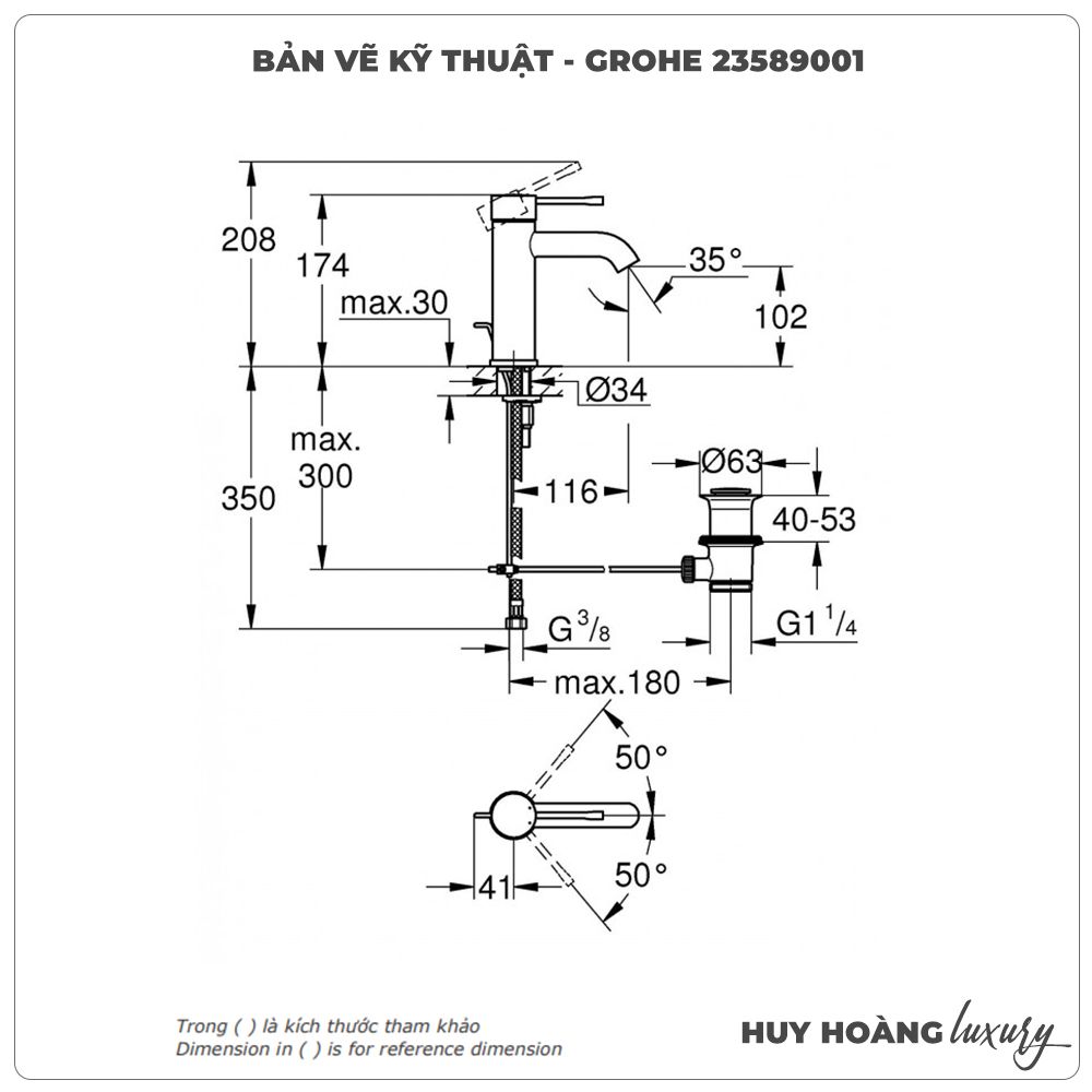 Thông tin sản phẩm: Vòi lavabo nóng lạnh GROHE 23589001 size S