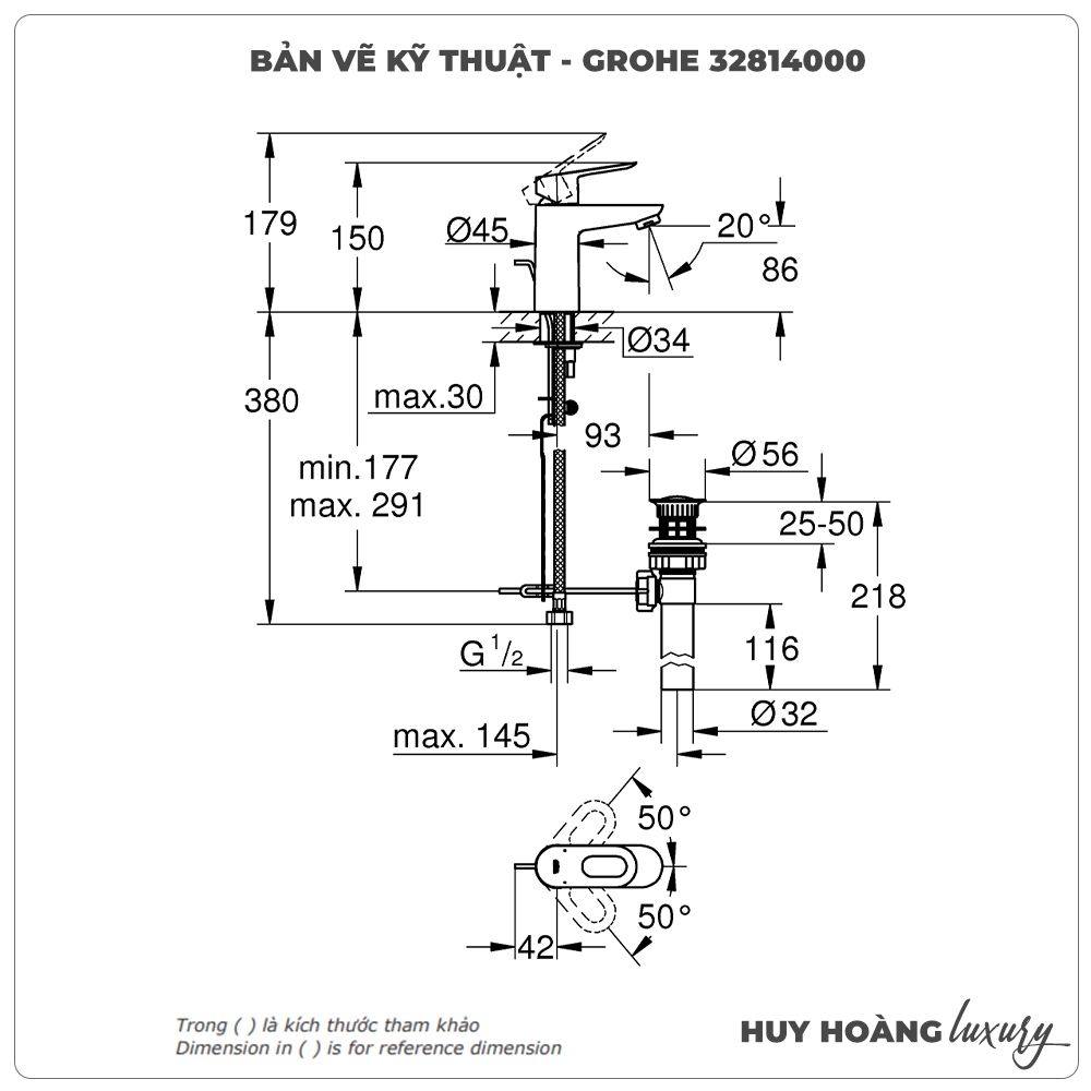 Thông tin sản phẩm: Vòi lavabo nóng lạnh GROHE 32814000 size S
