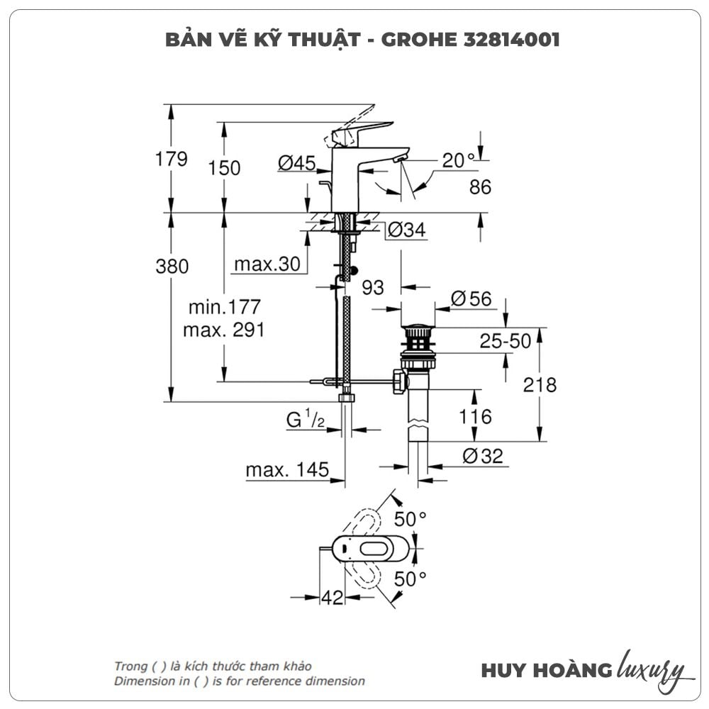 Thông tin sản phẩm: Vòi lavabo nóng lạnh GROHE 32814001 size S