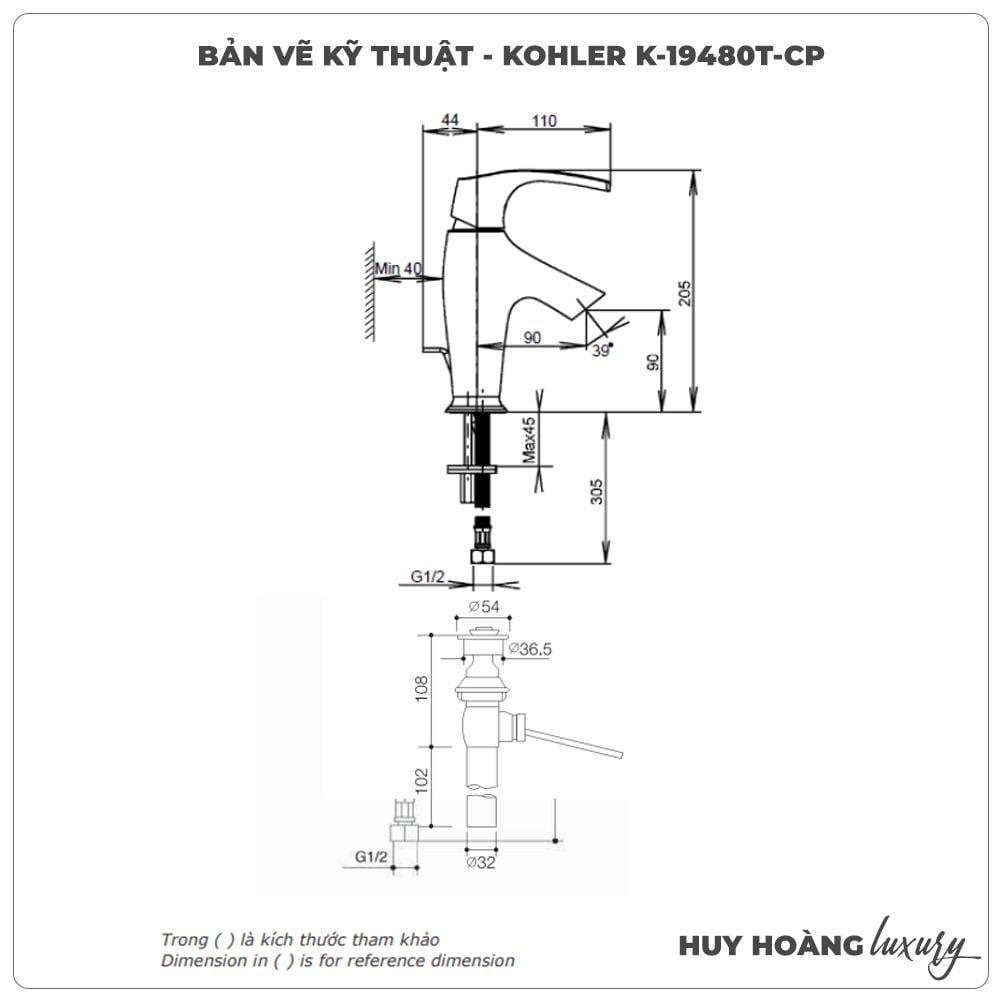 - Vòi lavabo nóng lạnh KOHLER K-19480T-CP được đóng gói hoàn thiện với tem dán chính hãng từ thương hiệu, phiếu bảo hành và phiếu thông tin;