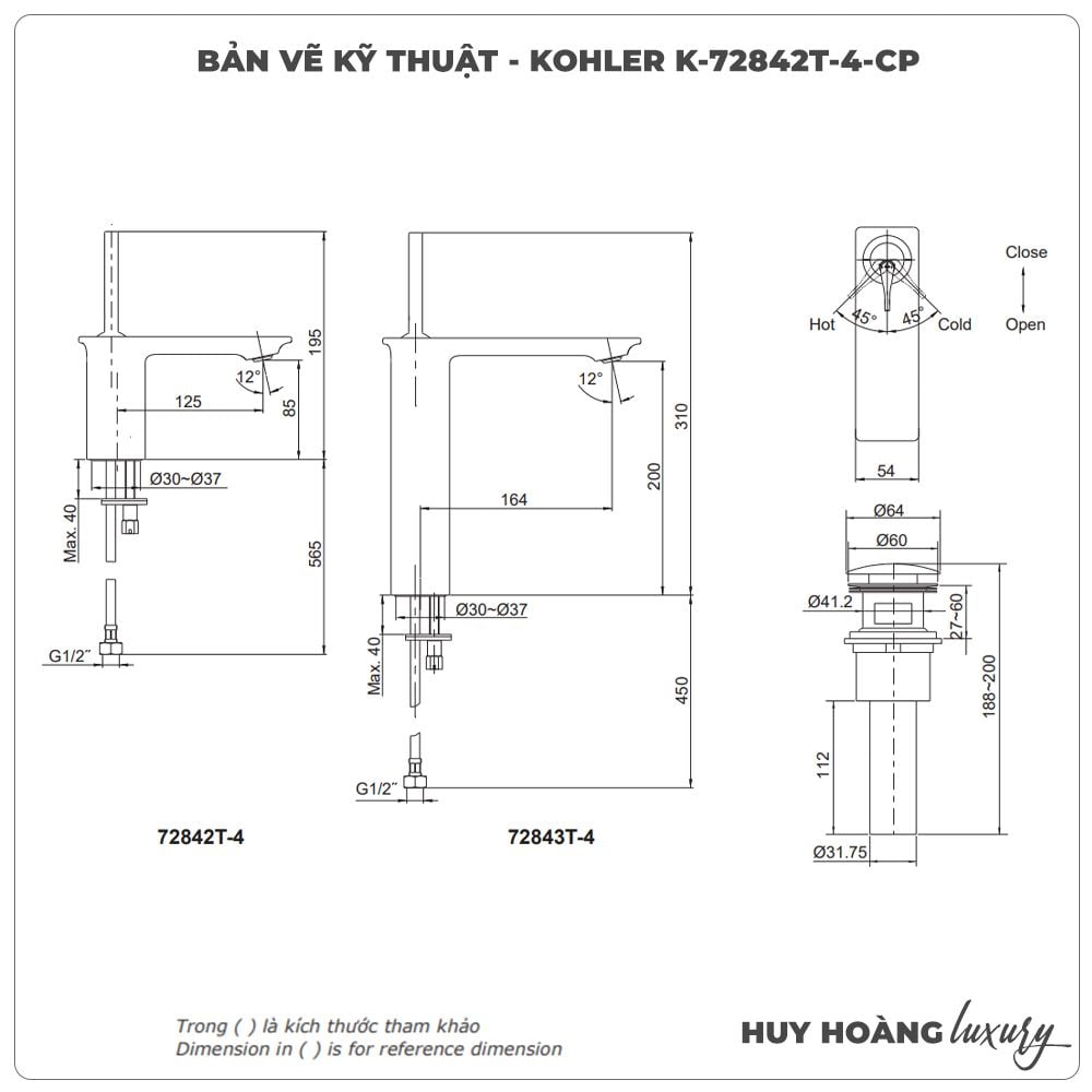 - Vòi lavabo nóng lạnh KOHLER K-72842T-4-CP được đóng gói hoàn thiện với tem dán chính hãng từ thương hiệu, phiếu bảo hành và phiếu thông tin;