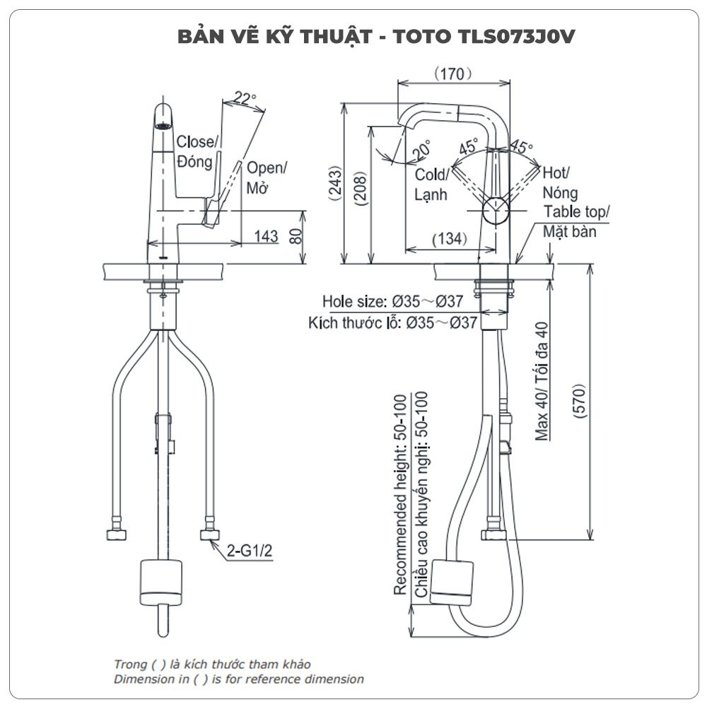 Thông số kỹ thuật vòi rửa bát TOTO TLS073J0V nóng lạnh