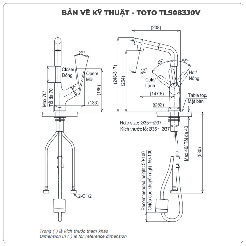 Thông số kỹ thuật vòi rửa bát TOTO TLS083J0Vnóng lạnh