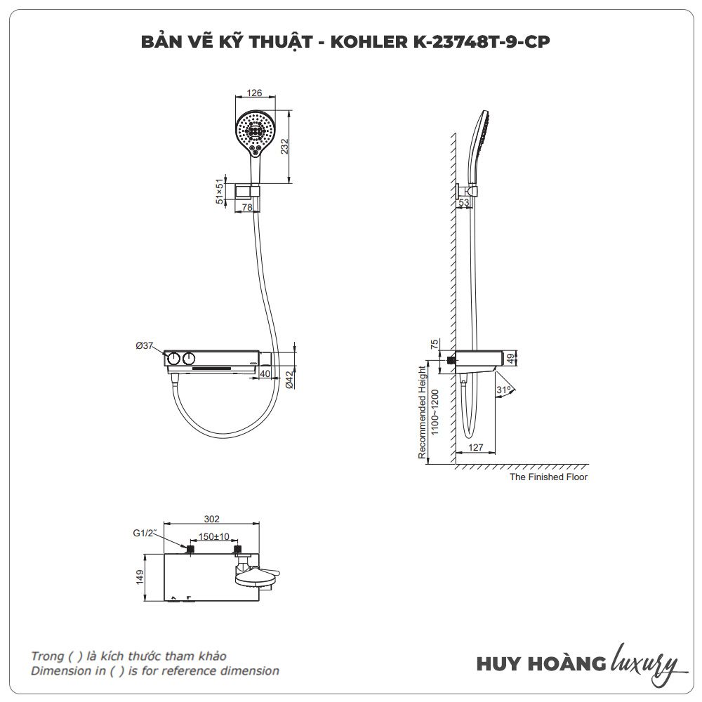 - Vòi sen xả bồn tắm KOHLER K-23748T-9-CP được đóng gói hoàn thiện với tem dán chính hãng từ thương hiệu, phiếu bảo hành và phiếu thông tin;