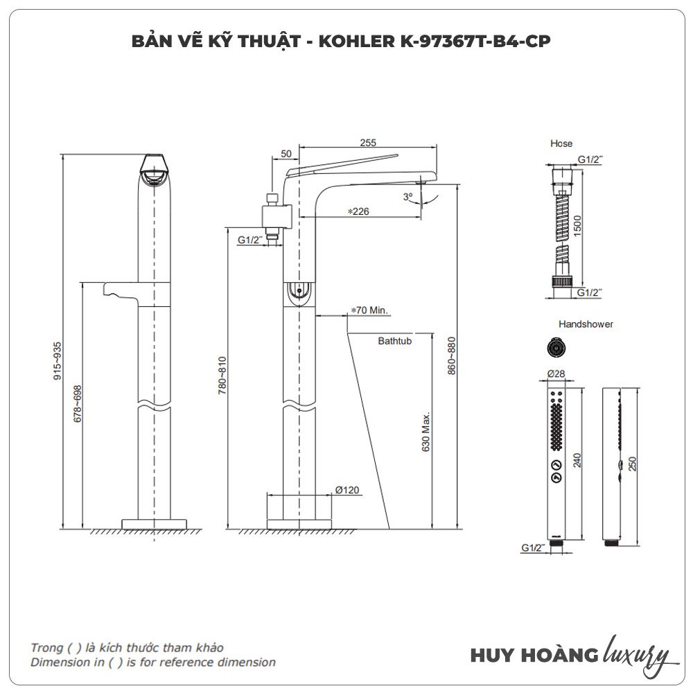 Thông tin sản phẩm: Vòi sen xả bồn tắm KOHLER K-97367T-B4-CP