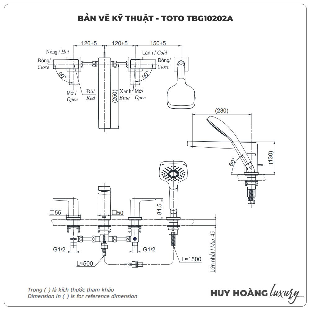 Thông tin sản phẩm: Vòi sen xả bồn tắm TOTO TBG10202A 4 Lỗ